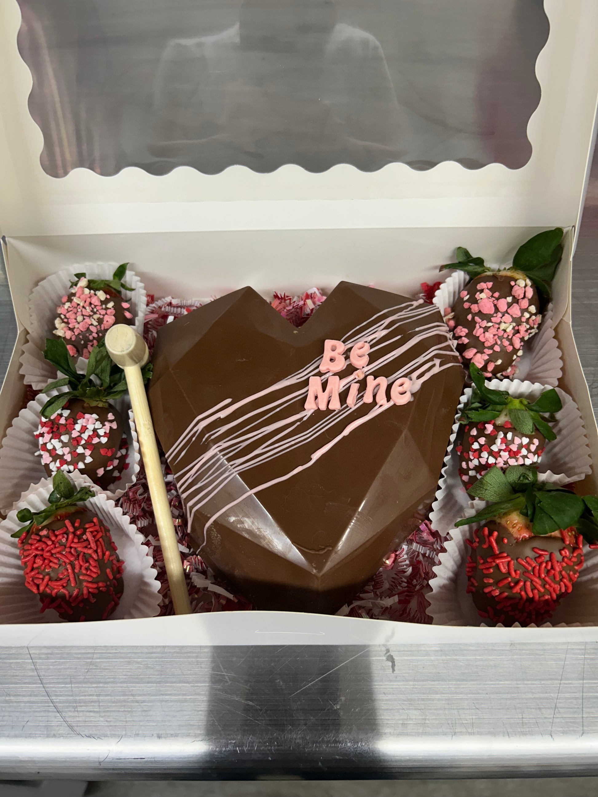 Breakable Chocolate Heart with 1/2 Dozen Chocolate Strawberries